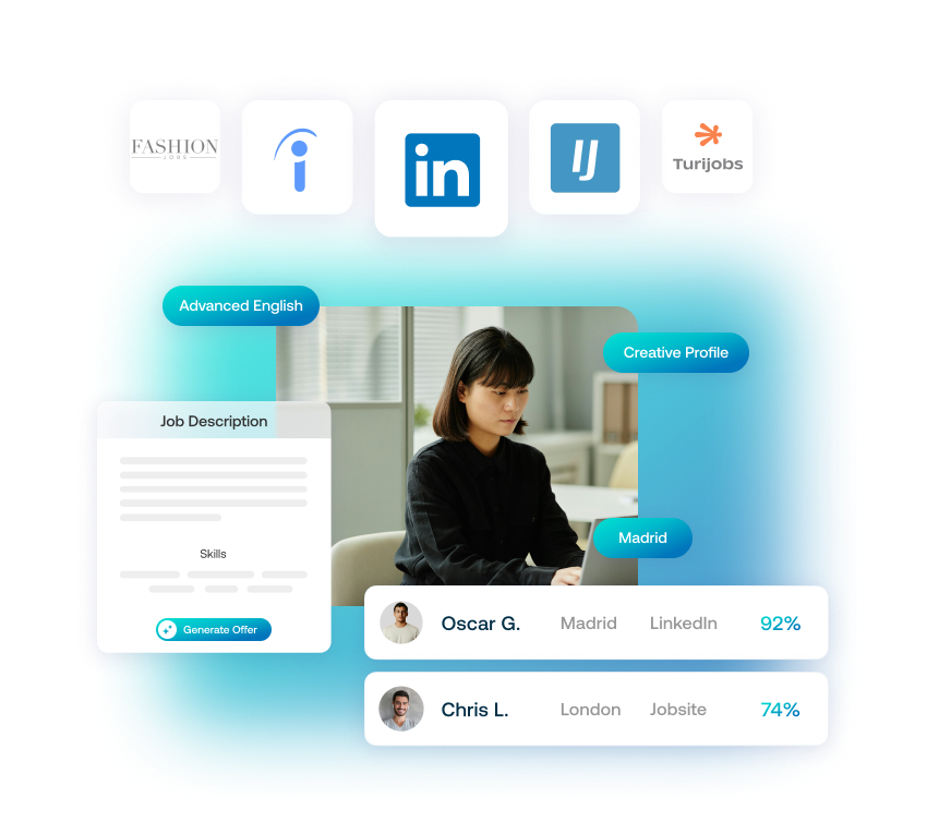 Plus, to make things even easier, we integrate with the main job portals: LinkedIn, InfoJobs, Indeed, FashionJobs, TuriJobs, Iberempleo, and many more!
